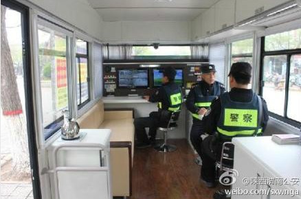 合陽警務(wù)人員在移動警務(wù)室上辦公