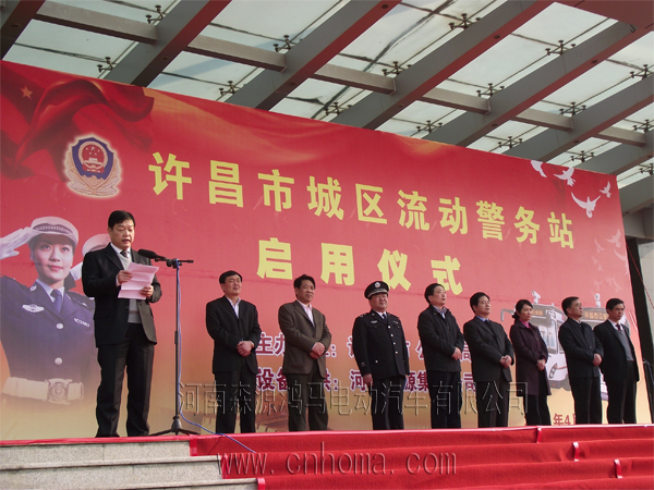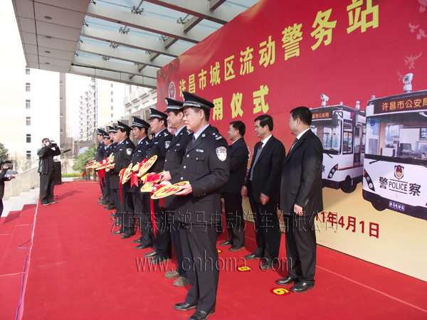 4月1日上午,鴻馬流動警務(wù)室電動警車巡邏車在河南許昌市公安局廣場舉行警企聯(lián)動保平安流動警務(wù)室進(jìn)城區(qū)流動警務(wù)站進(jìn)社區(qū)啟動儀式,10輛移動警務(wù)室集中進(jìn)社區(qū)村居開展治安巡邏。許昌市委書記李亞,長葛市委書記王文杰,許昌市副市長、公安局局長翟化夫 森源集團(tuán)董事長楚金甫等領(lǐng)導(dǎo)出席啟動儀式。公安分局黨委成員、各內(nèi)設(shè)機(jī)構(gòu)、直屬單位、派出所負(fù)責(zé)人,社區(qū)民警共300余人參加啟動儀式。