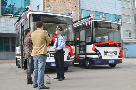 為了提升公安隊(duì)伍警用裝備水平、街面巡防管控能力,陜西韓城購(gòu)置了20臺(tái)高科技移動(dòng)警務(wù)室。移動(dòng)警務(wù)室配置了360°旋轉(zhuǎn)的防水高清監(jiān)控?cái)z像頭,通過(guò)車載3G無(wú)線網(wǎng)絡(luò)將現(xiàn)場(chǎng)監(jiān)控畫(huà)面實(shí)時(shí)傳輸至指揮中心。其配備的車載查詢系統(tǒng)含有辦公電腦、身份證掃描儀等設(shè)備,可迅速完成信息查詢、核對(duì)等工作。移動(dòng)警務(wù)辦公室控制臺(tái)是整個(gè)流動(dòng)警務(wù)室的“大腦中樞”,車載報(bào)警調(diào)度指揮系統(tǒng),支持圖像無(wú)線傳輸系統(tǒng),并能通過(guò)車載3G無(wú)線網(wǎng)絡(luò)和指揮中心“互聯(lián)互通”,實(shí)時(shí)調(diào)取路面監(jiān)控畫(huà)面,實(shí)現(xiàn)“移動(dòng)作戰(zhàn)”。