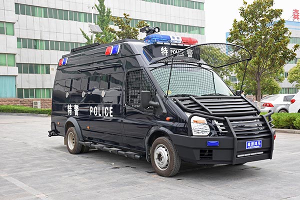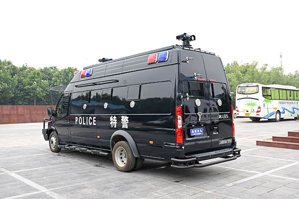 該型運兵車車身具有防彈功能,車頂配備戰(zhàn)術(shù)爬梯方便特警處理高處沖突;車身兩側(cè)安裝防掀車鋸齒,保護車內(nèi)警員不受外部傷害;左右兩側(cè)配備拉手、踏杠方便警員外部巡邏;以解決警力、警械輸送為主要目的,同時配備圖像監(jiān)控和傳輸功能可將現(xiàn)在情況及時傳輸?shù)街笓]中心,可滿足特警對運兵車輛處理應(yīng)急事故的基本需求。